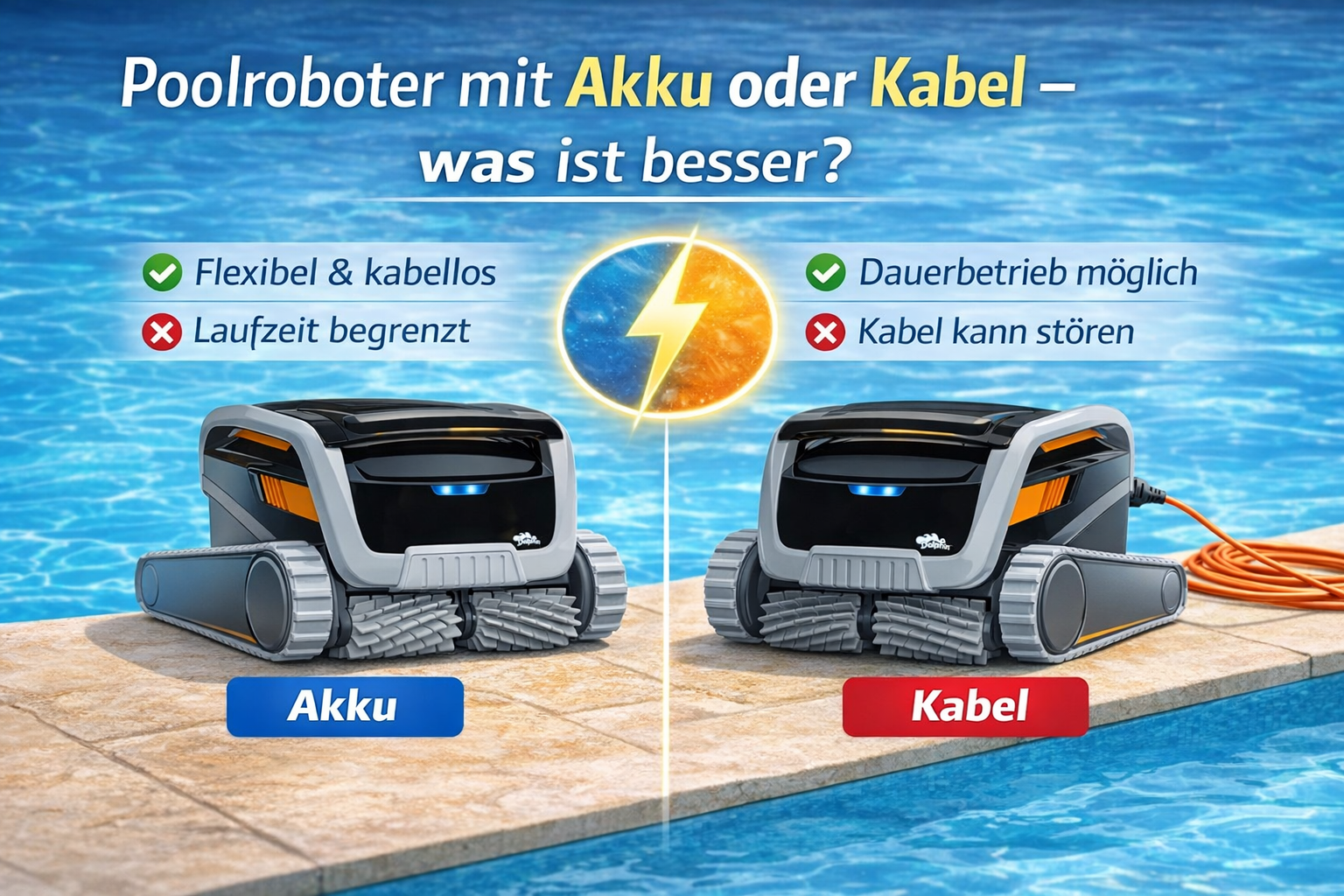 Zum Blog-ArtikelDie Frage aller Fragen, die sich immer mehr Pool-Besitzer stellen, was ist denn nun besser? Akku oder Kabel?